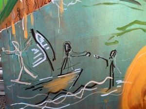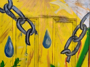 She collected four abandoned and broken doors to use as her canvas as a symbol for how something beautiful can come from brokenness and abandonment.