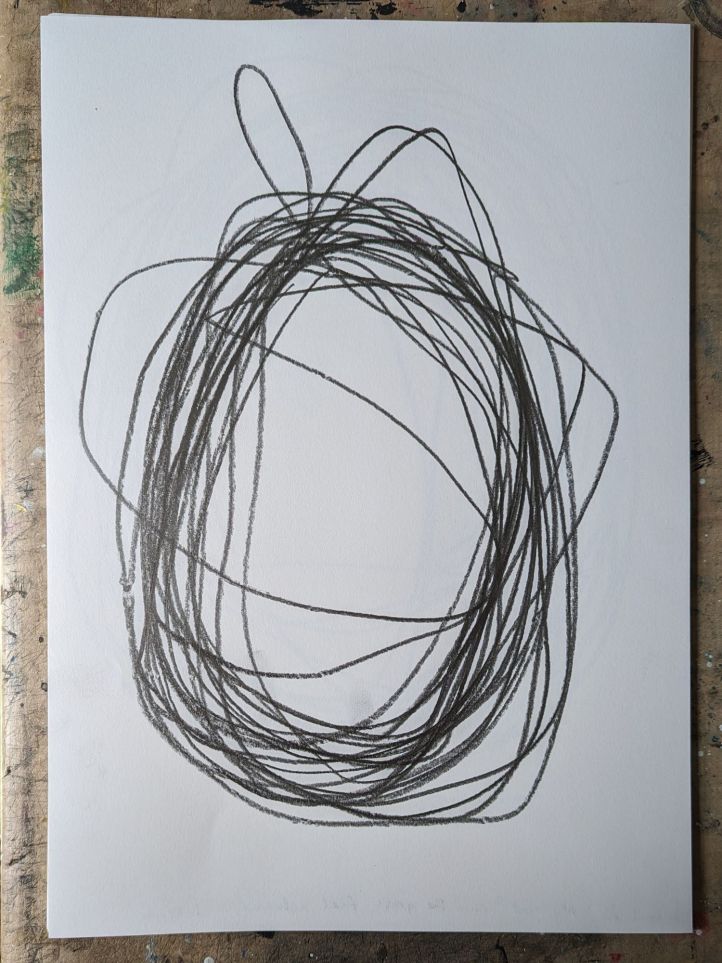 Recreating marks made by my partner on Strava walking 2k in the ward garden whilst he was in a pshychiatric hospital for 3 months. Connecting myself with him, generating the same lines again and again in different locations and mediums.