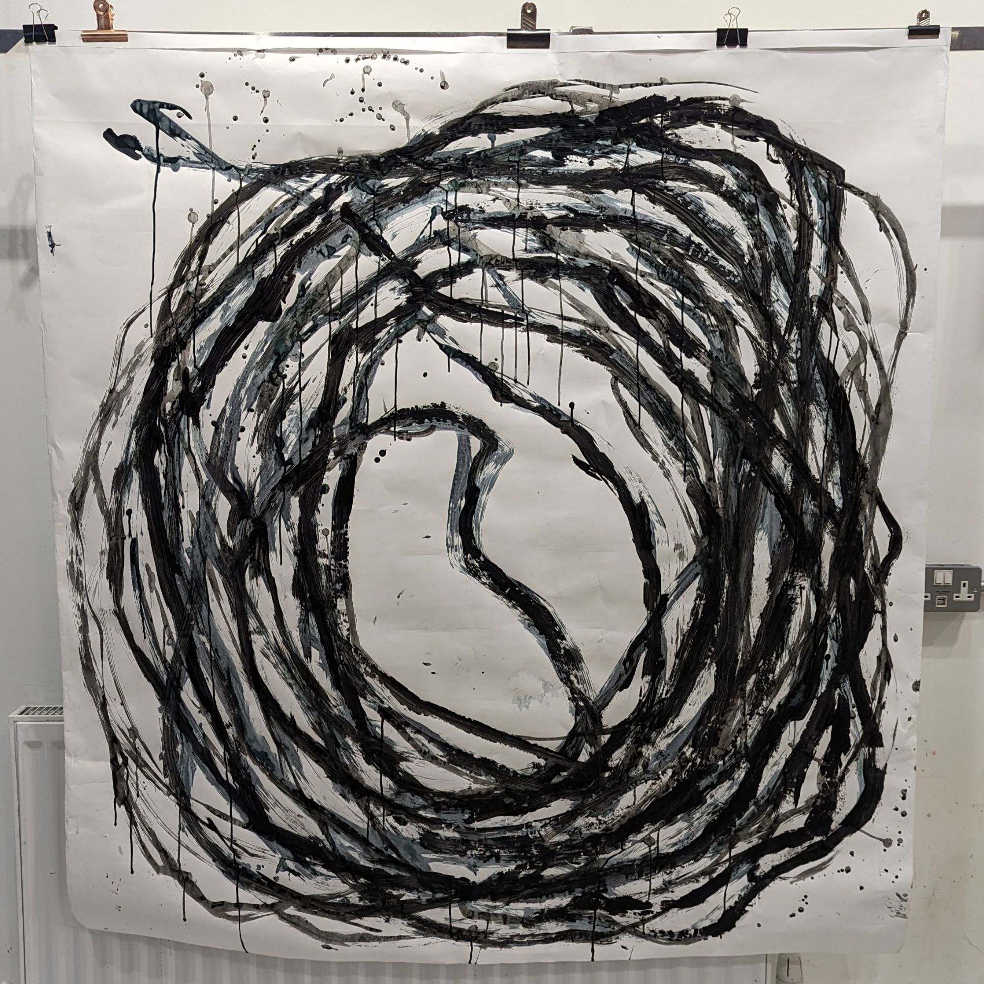 Recreating marks made by my partner on Strava walking 2k in the ward garden whilst he was in a pshychiatric hospital for 3 months. Connecting myself with him, generating the same lines again and again in different locations and mediums.
