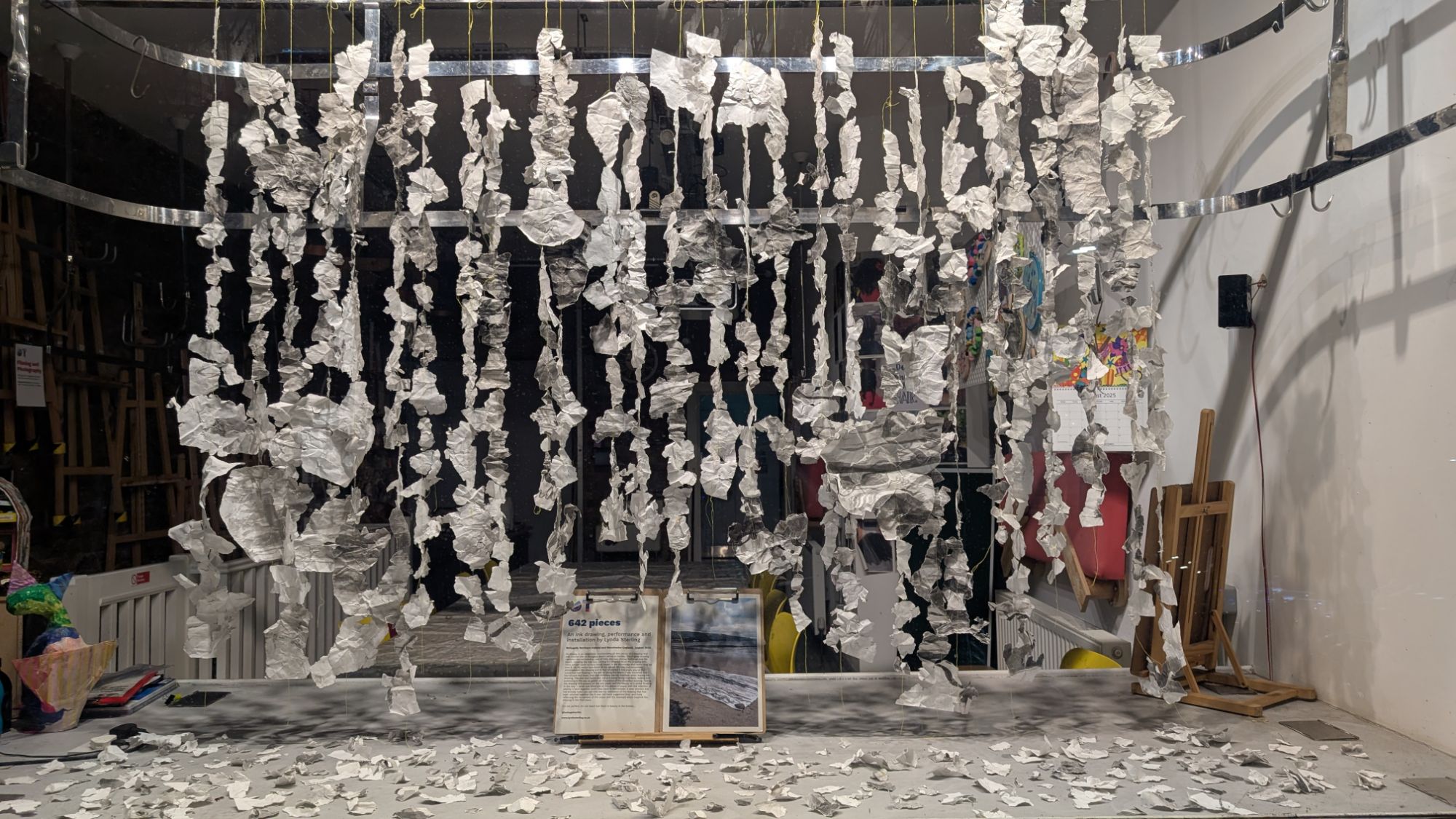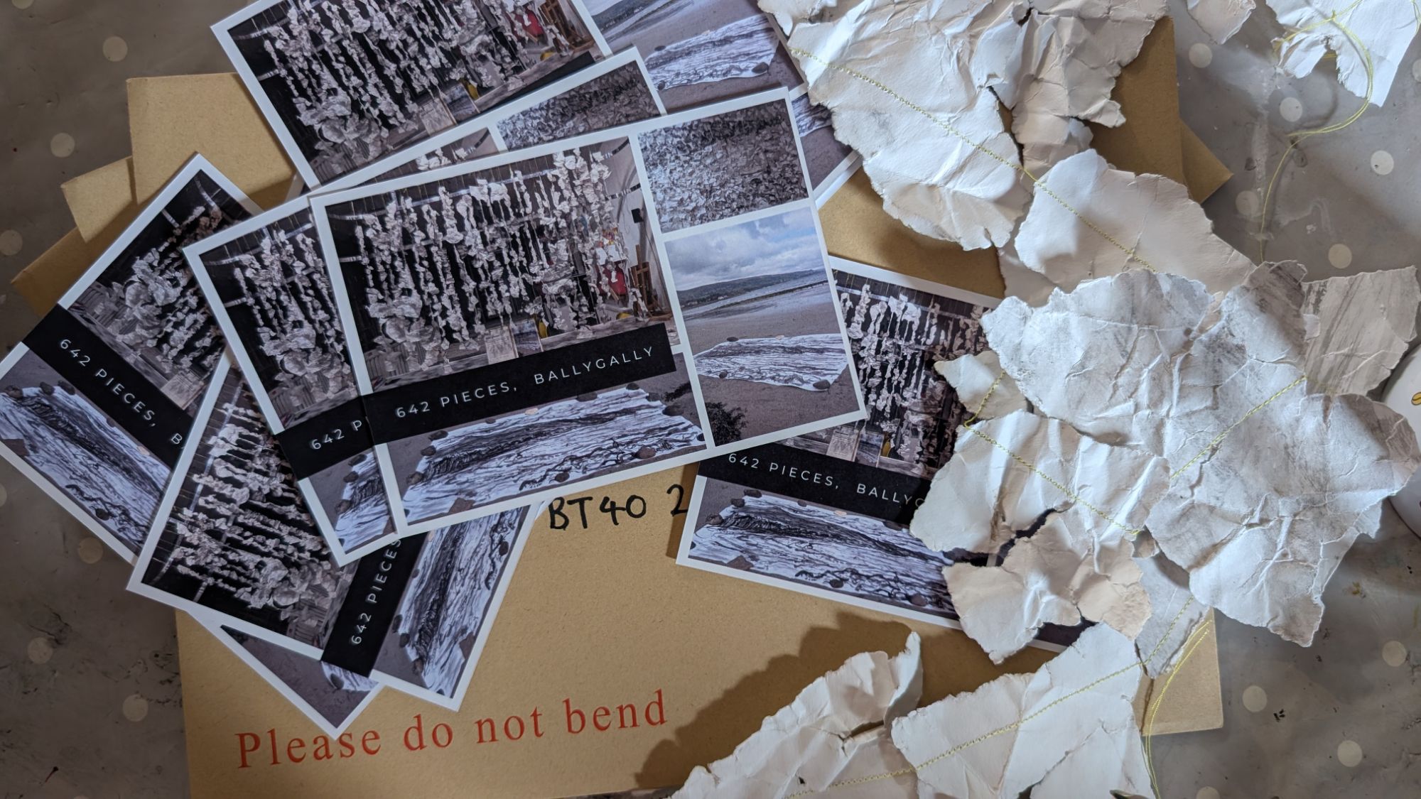 Allowing the art to come full circle, postcards along with each strand of the drawing installation have been posted to houses along the Ballygally coast road. Small pieces and postcards will also be available at the Spar for anyone to take.